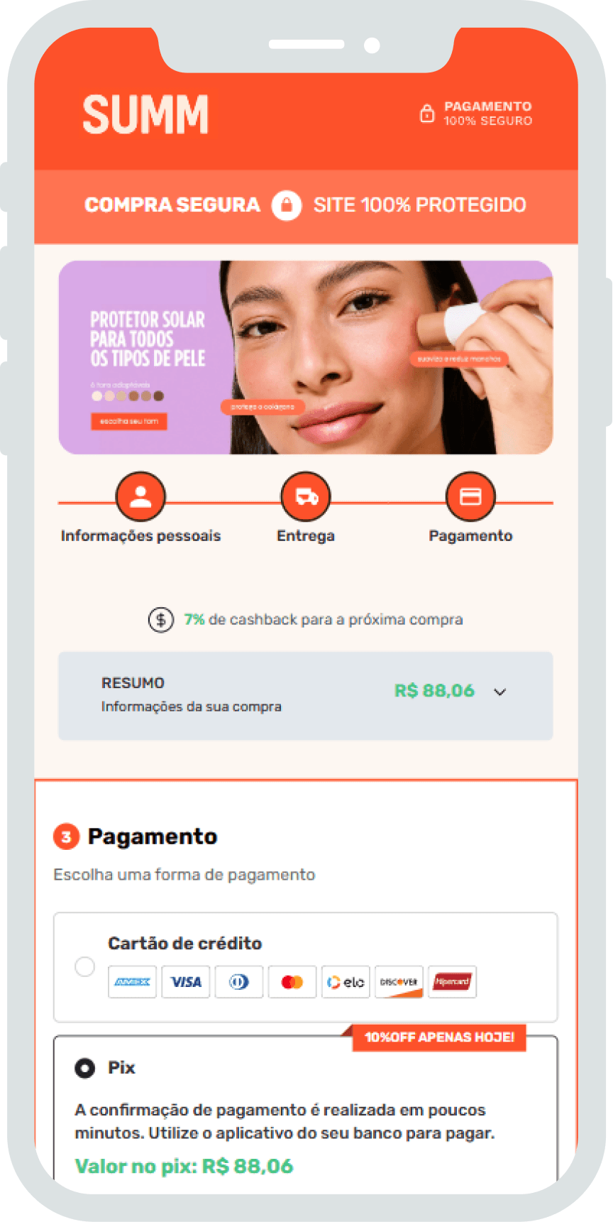 Construído para aumentar o ticket médio com recursos de pagamento inteligente: Parcelamentos otimizados, sugestões de upgrade, e a segurança que o consumidor espera de uma marca confiável.